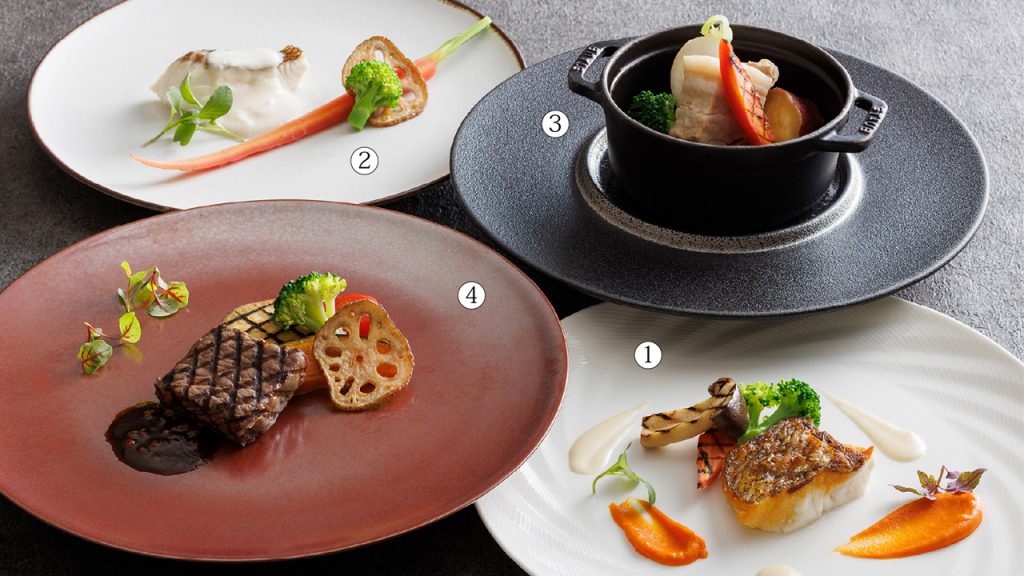 シェフが腕をふるうフレンチは、旬の素材を使い、目にも鮮やかなメニューで種類豊富にご用意しております。