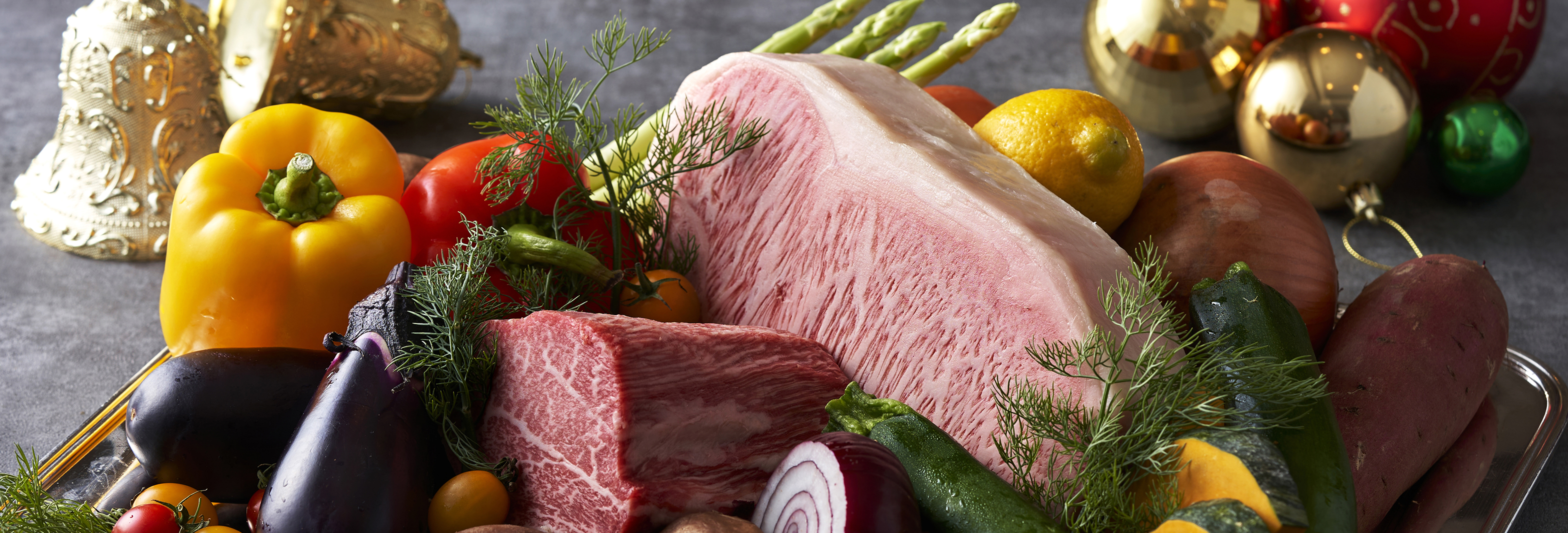 国産牛をメインに、京都の地野菜やアワビ・オマール海老などの魚介類を、