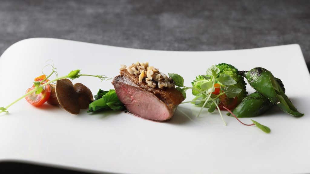 ◆近江鴨のロティ 京都・鷹峯“松野醤油”金山寺味噌と小蕪のグラチネ