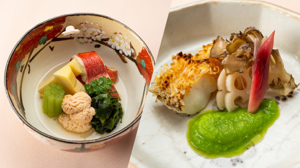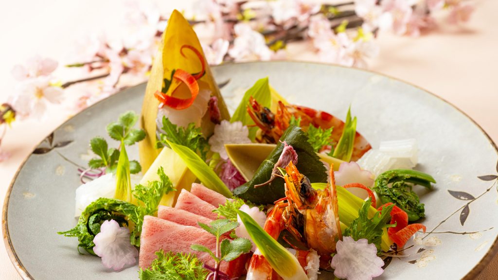 春の息吹を宿す京都ならではの食材を吟味し、地野菜とともに旬の味わいを心ゆくまでお楽しみいただける会席をご用意いたします。さくらの風味、たけのこの香りや食感、滋味豊かな若芽の味わい、春の訪れを存分におたのしみください。