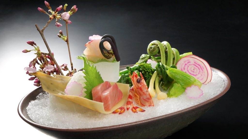 料理の中に造りだした日本の四季。旬の食材を用いて一つ一つの器の中に、移ろいゆく季節の彩りを演出いたします。