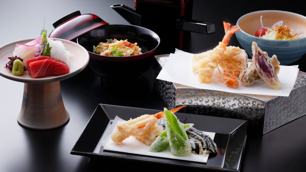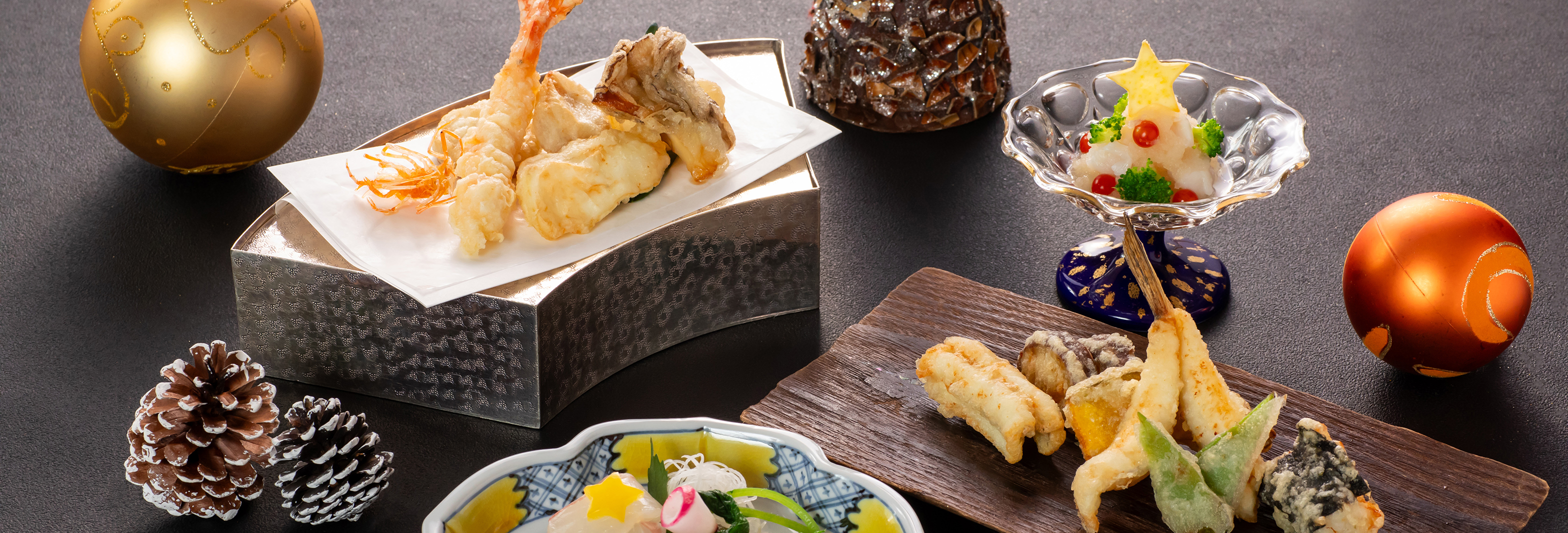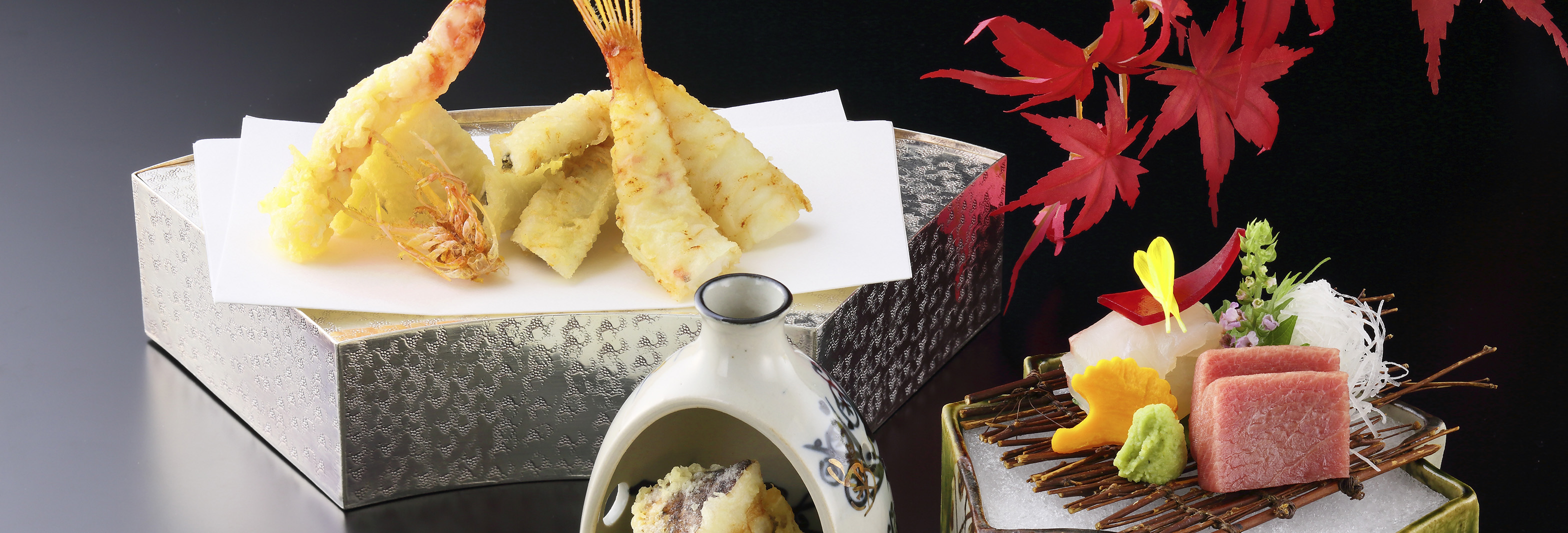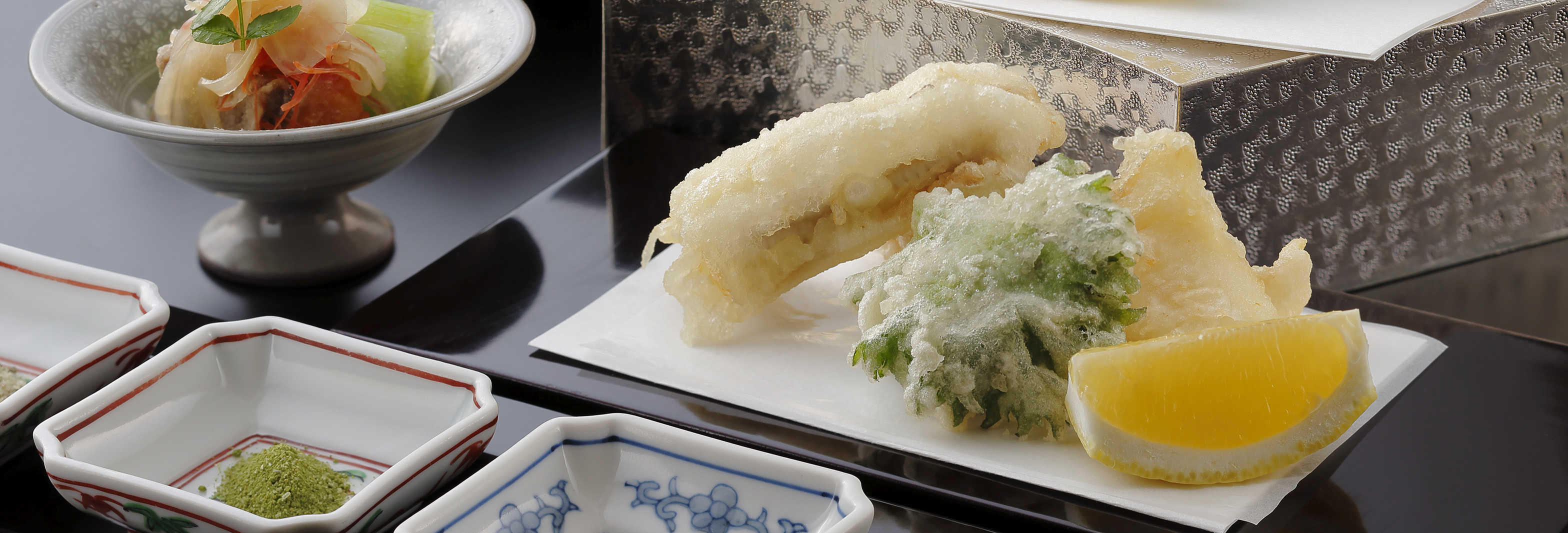 日本料理と同じ店舗内に店を構え、明るい店内で檜を使用したカウンターが高級感と木のぬくもりを感じることができます。車海老や穴子などの魚介類をはじめ、季節ごとに旬の味が楽しめる野菜など、目の前で職人が揚げる、熱々の天ぷらをお召しあがりいただけます。お客様がカウンターの醍醐味を楽しんでいただけるよう、スタッフ一同心よりお待ち申し上げております。